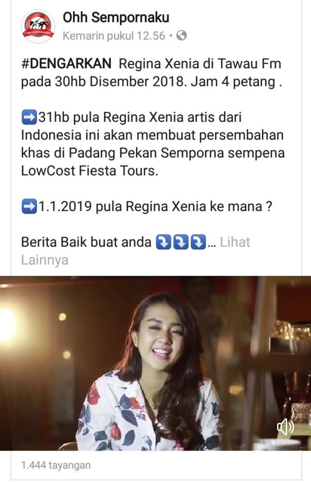 Sebuah prestasi cukup singkat namun gemilang, pasalnya seorang penyanyi asal bandung yang mempunyai single syexsyi ini berhasil mencuri perhatian berbagai pihak dari malaysia, lewat lagu tersebut Regina xenia mampu menjadi sorotan di negri jiran sana, terbukti lewat tawaran manggung dan mengisi di berbagai event sudah banjir, meski sedikit ada apa yaa yaaa gitu deh wajar namanya juga cobaan. Tetap semangat regina….. (red) tak sedikit akun akun radio atau pun EO ataupun perorangan yang menyambut riang akan kedatangan artis dari indonesia ini yang sedang jadi bahan perbincangan di sana. Dan ternyata di indonesia juga mulai rapat mengangkat menduduki di chart atas mendekati para seniornya. Dan semua ini tidak lepas dari kinerja team yang selalu sigap. Sukses buat Regina x sukses buat Muzik Dua Karya.