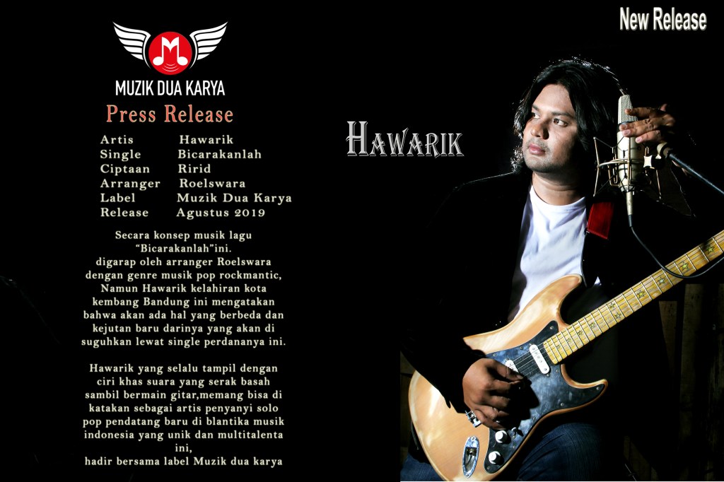 memasuki awal bulan September 2019 MUZIK DUA KARYA merealease satu single yang berjudul BICARAKANLAH, yang di bawakan oleh artis solo “HAWARIK”. pria kelahiran asal bandung indonesia.